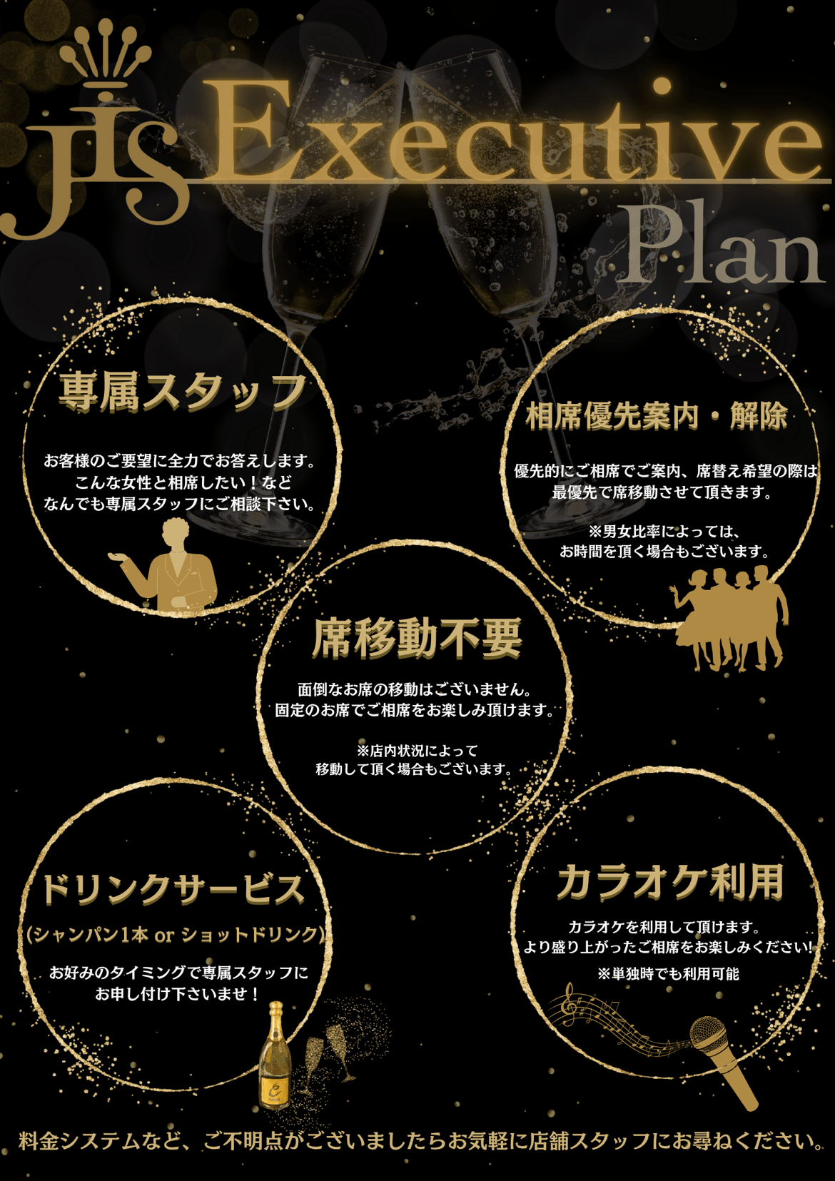 通常プランにはない相席優先案内や専属スタッフなど上質なサービスを含めたプランです。【料金】
